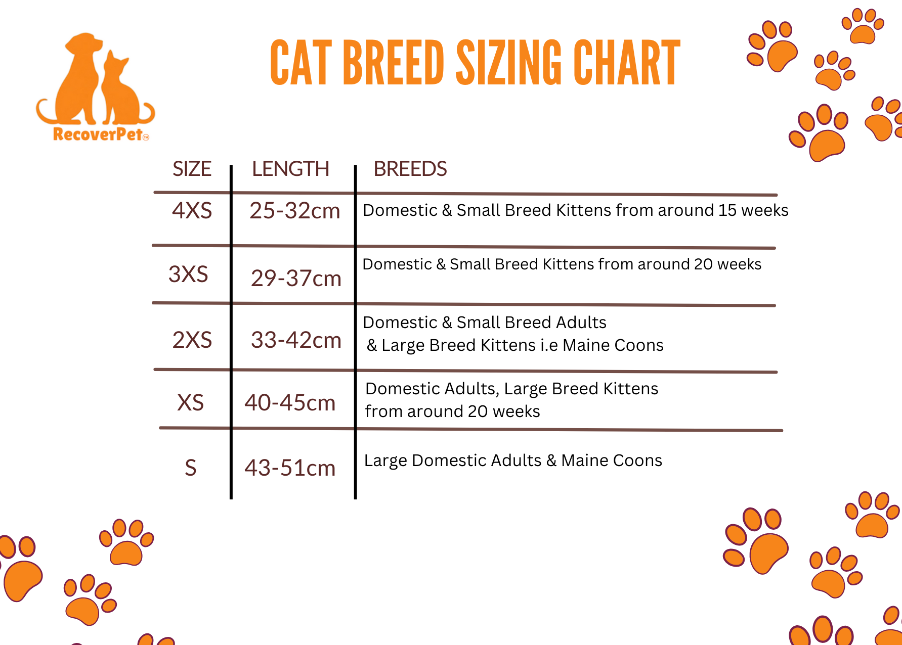 Our comfortable recovery suits are a great alternative to the E-Collar/Cone of Shame. We have several sizes to ensure a perfect fit for your cat.