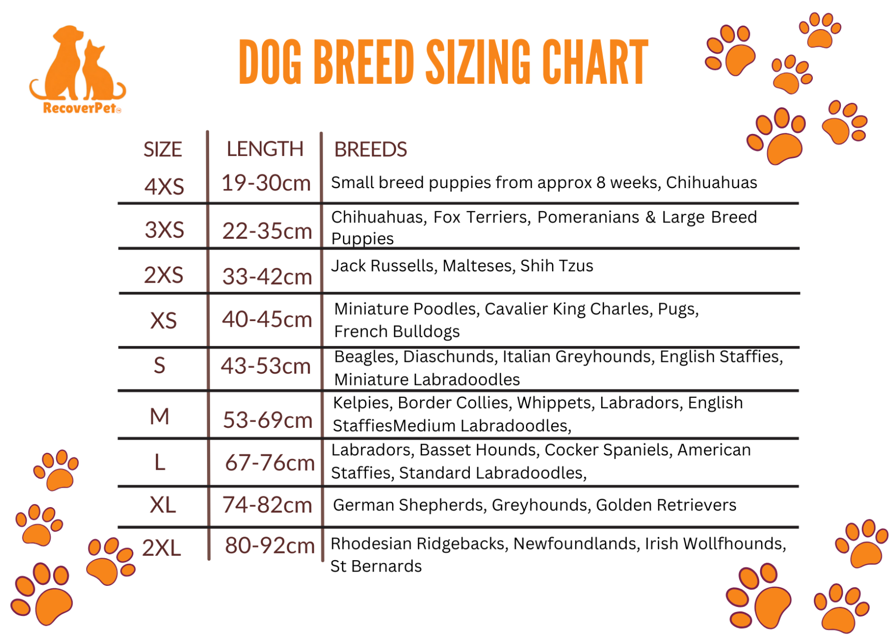 Grab a ruler and measure your dog from their collar to the base of the tail. Once you've got your measurements, you can pick the size range below: